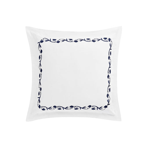 Adeline Midnight Blue Floral Embroidered 600 Thread Count Cotton Sateen Continental Square Pillowcases - Pair