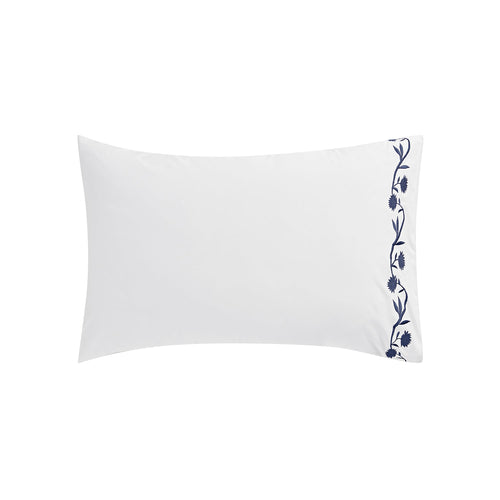 Adeline Midnight Blue Floral Embroidered 600 Thread Count Cotton Sateen Regular Pillowcases - Pair