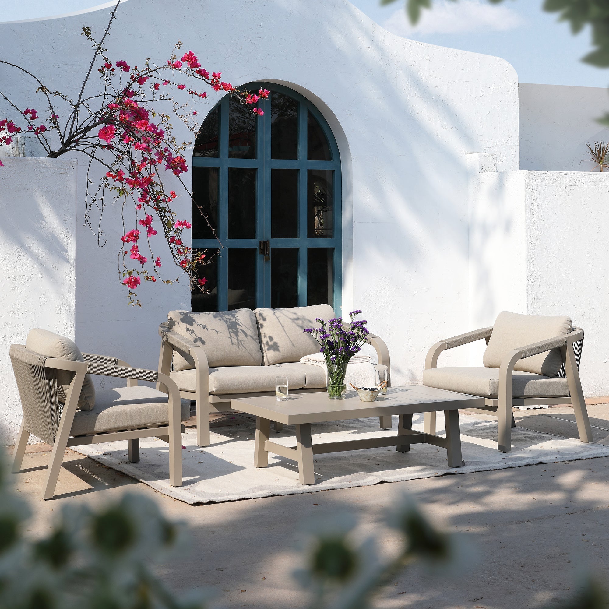 ROPE-WOVEN FOUR-SEATER SQUARE DINING TABLE AND CHAIR SET